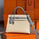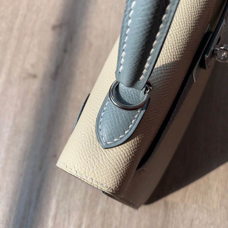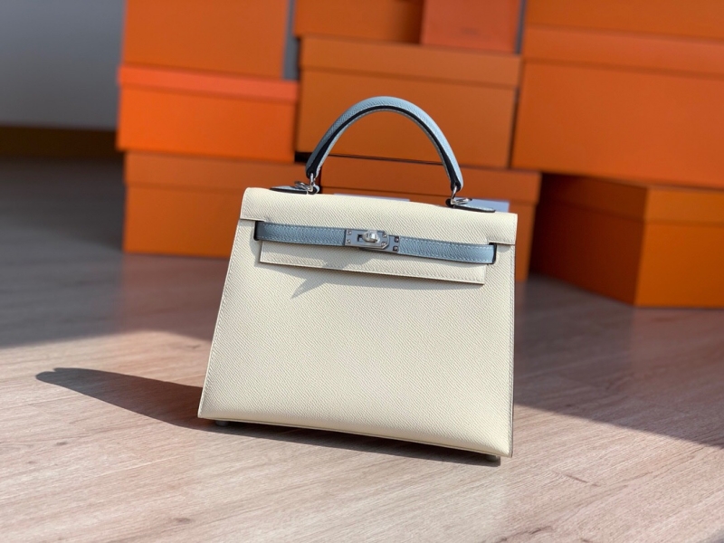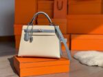 - 爱马仕Hermes Kelly系列 凯莉包25cm Epsom皮手掌纹 纯手工定制版 奶昔白