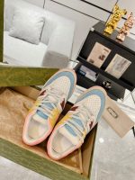 该品牌采用 90 年代篮球运动鞋的代名词,推出了对 Gucci Basket 运动鞋的全新诠释。这种风格模仿了球场审美的自我表达,具有独特的特征和细节。多色定义了这一标志性设计的新迭代。