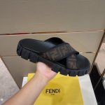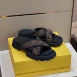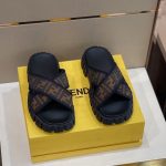 Fendi 棕色织物拖鞋