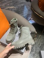 BALENCIAGA 做旧效果军靴,甘草色,仿旧饰面,后部压花徽标,圆头,长及脚踝,前系带向上开合,侧面拉链开合,粗橡胶凸纹鞋底。