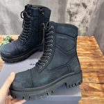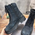 BALENCIAGA 仿旧军靴,甘草色,仿旧饰面,后部压花徽标,圆头,及踝,前系带向上开合,侧面拉链开合,粗橡胶凸纹鞋底。