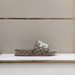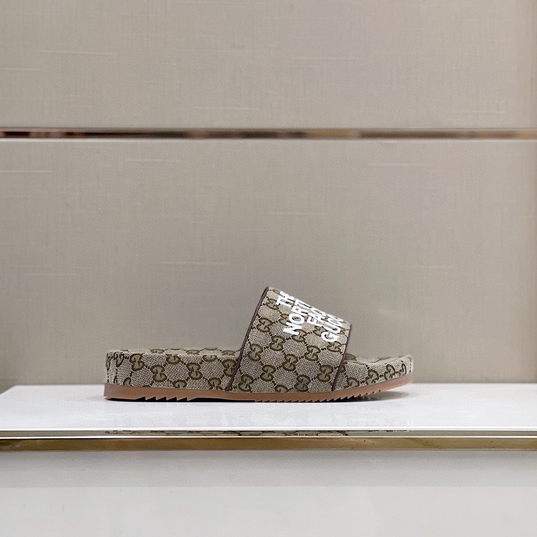 品牌典藏花押字面料经过重新设计,成为 2020 早秋男士拖鞋。模压鞋床配有橡胶凸耳鞋底。