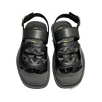 受到 70 年代档案设计(品牌标志性时代)的影响,Interlocking G 呈现出超大剪裁- 这款黑色凉鞋的细节。最新系列以新方式探索档案符号,颂扬永恒优雅,