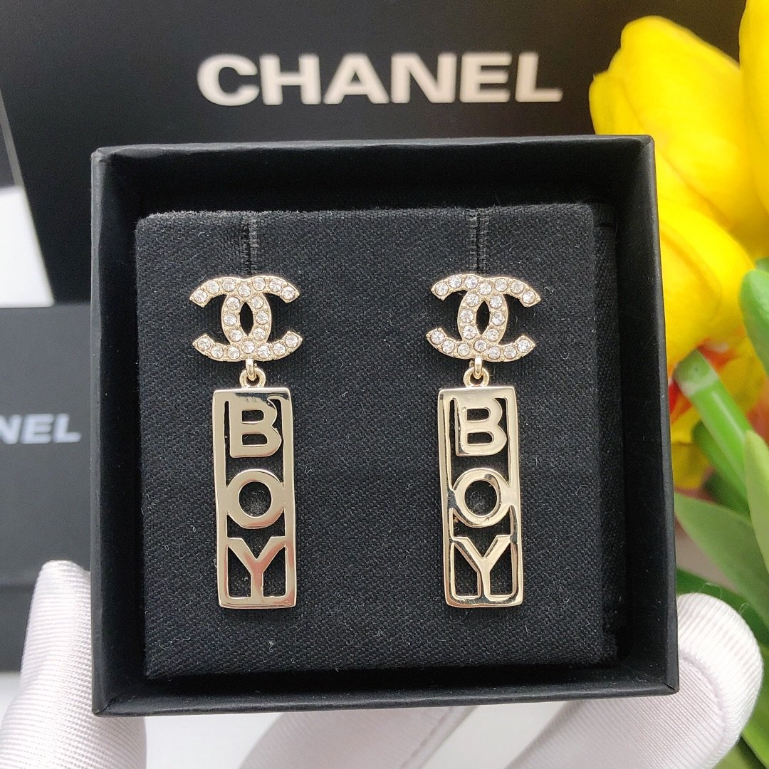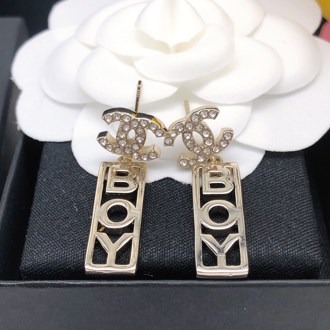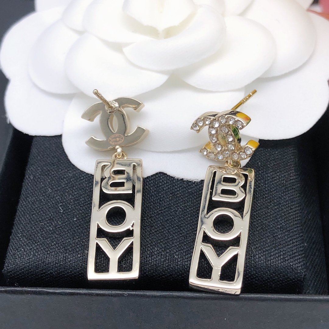 Chanel Boy 水晶耳环金色