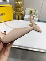 Fendi First 露跟鞋,配有锥形脚趾和踝带。金色金属斜F形雕刻鞋跟。