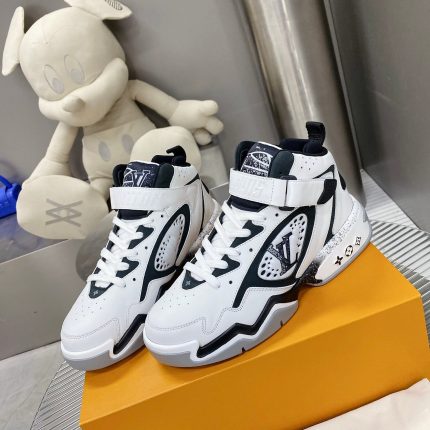 这款 LV Trainer 2 运动鞋标志着 Louis Vuitton 2022 年秋冬秀场。与 Virgil Abloh 的标志性原创鞋款一样,它向复古篮球鞋致敬,配有带衬垫脚踝、可调节尼龙搭扣带,鞋舌上还饰有 LV 篮球标志。双色调外底饰有 Monogram 花朵。