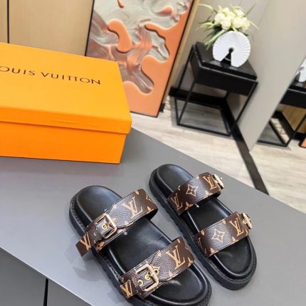 这款 Bom Dia 平底穆勒鞋采用专利 Monogram 设计,带衬垫的解剖学 Fusbet 带来极致舒适感,在温暖的天气里凉爽又轻松时尚。两条带有路易威登刻纹金色搭扣的带子,可调节以完美固定双脚。