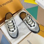 Lous 露跟运动鞋是 Louis Vuitton 2022 年秋冬时装秀的核心单品。 Monogram 元素,舒适的软垫鞋舌,外底浮雕 Louis Vuitton 标志。