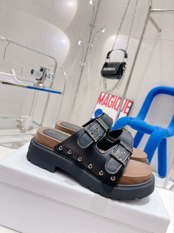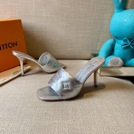 旋转泵款式时尚,极其柔软。它的灵感源自 20 世纪 90 年代流行的方头和喇叭形中高鞋跟。鞋面配有金色金属粗链条配件,中央有 LV Circle 标志。