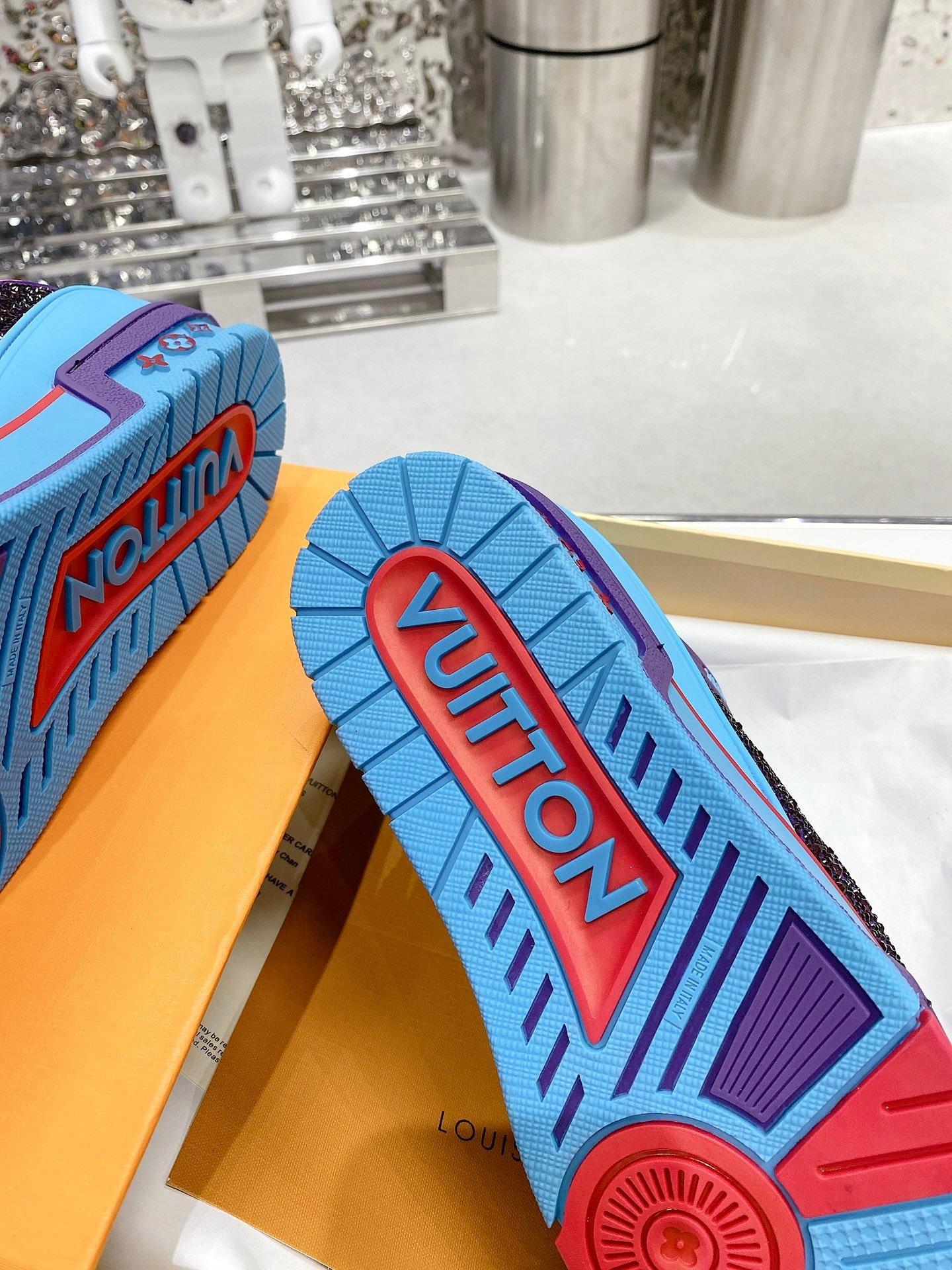 季节性品种中的佼佼者是充满活力的,每一步都吸引光线和风格。明亮的色彩组合吸引了人们对该系列的关注。每双鞋的鞋底都注塑有花押字图案,鞋舌和侧面有 LV 标志。