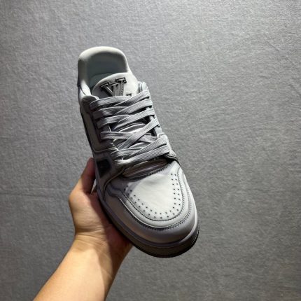 这款标志性 LV Trainer 运动鞋的冬季版本柔软,配有温暖的衬里。外底与鞋面颜色匹配,呈现全绿色外观,并辅以 LV 首字母细节。侧面印有 Virgil Abloh 的银色手写 Louis Vuitton 签名。