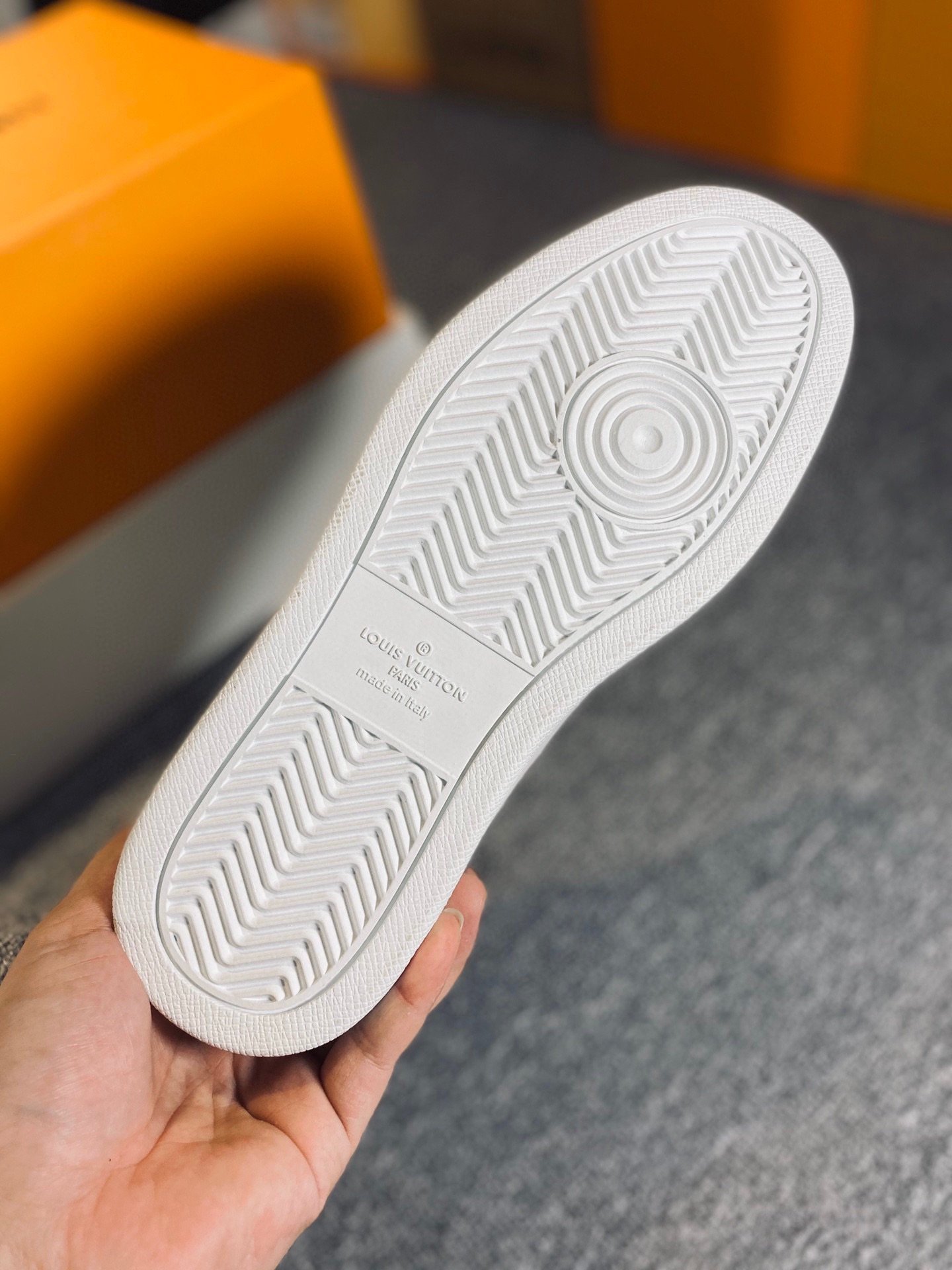 Rivoli 运动鞋以 Eclipse Monogram 和 Monogram Reverse 组合重新诠释。这一标志性风格辅以饰边和白色外底,而鞋舌上则饰有银色 LV 首字母浮雕。该型号具有可拆卸的形状记忆鞋垫,带来最佳舒适度。