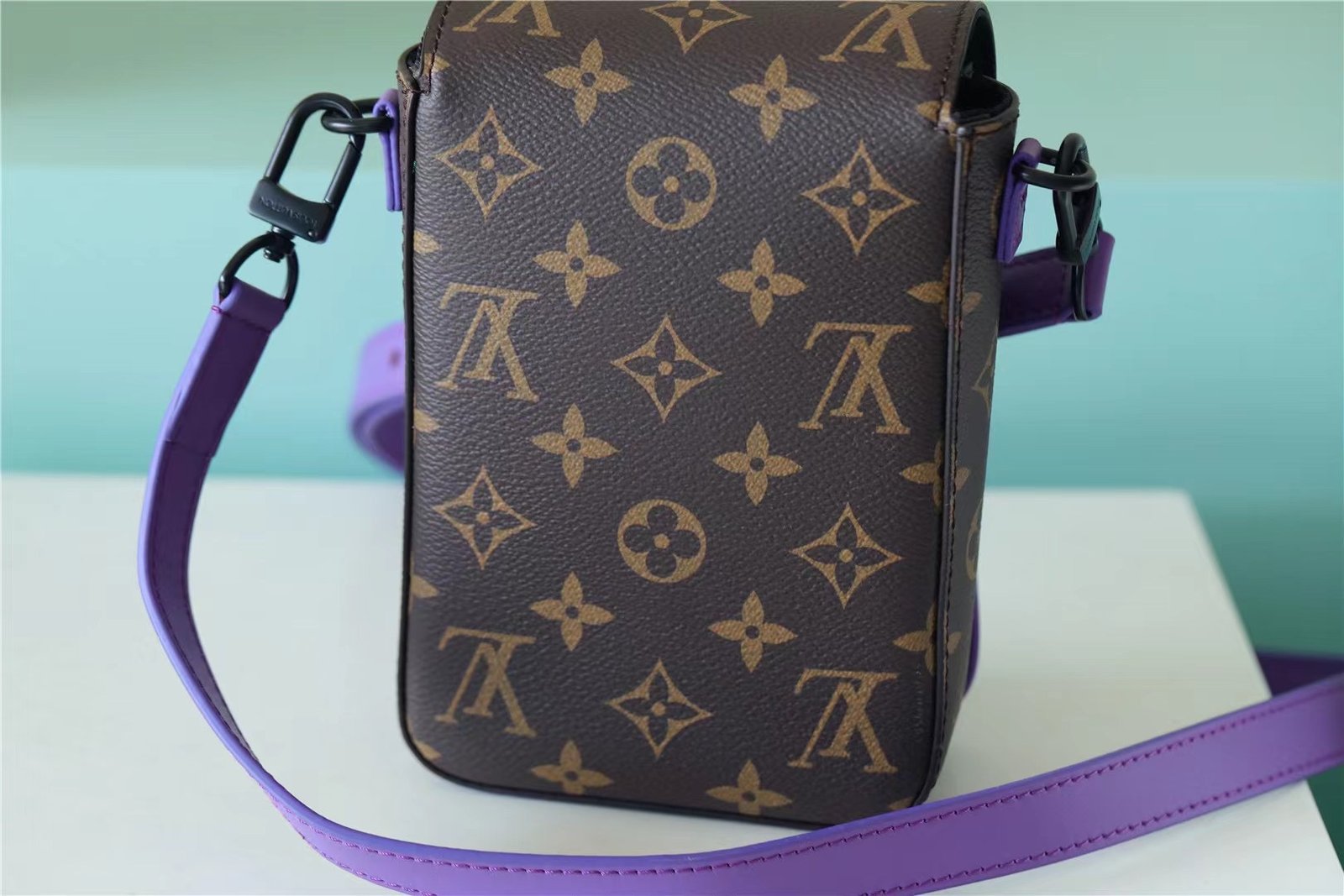 路易威登 S-Lock 垂直可穿戴钱包 Monogram Macassar Purple 适合男士、男士包袋、单肩包和斜挎包 7.5 英寸/19 厘米 LV
