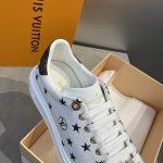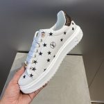这款特别版的 Time Out 运动鞋印有本季的关键明星图案。鞋面饰有刻有 LV 缩写的金色金属星形蕾丝配饰。这款标志性款式的特点是加高外底,饰有 3D Monogram 花朵图案。