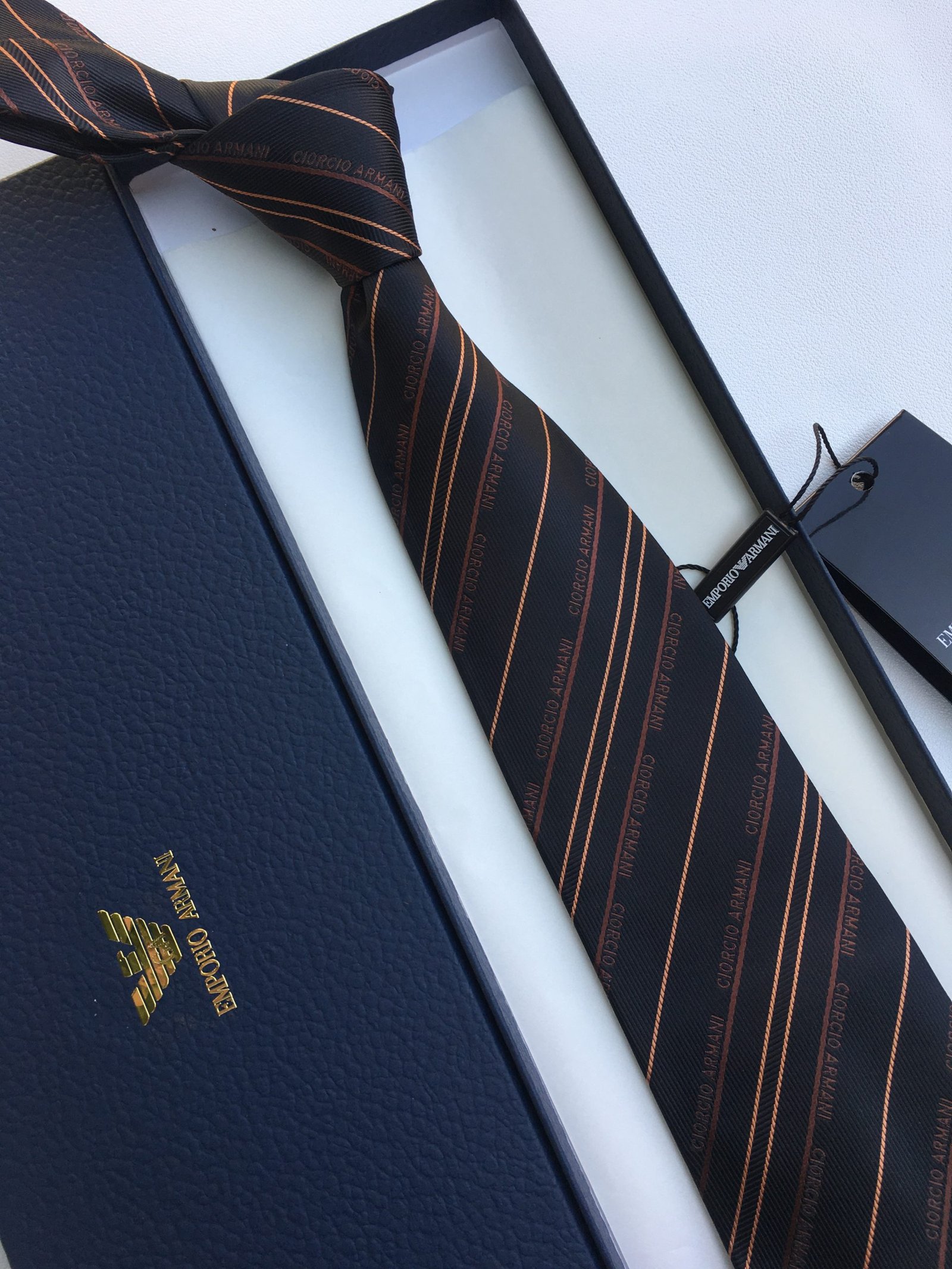 Armani 领带带刺绣文字黑色 Armani 男士领带