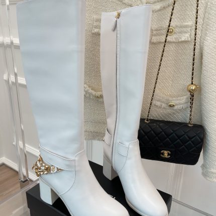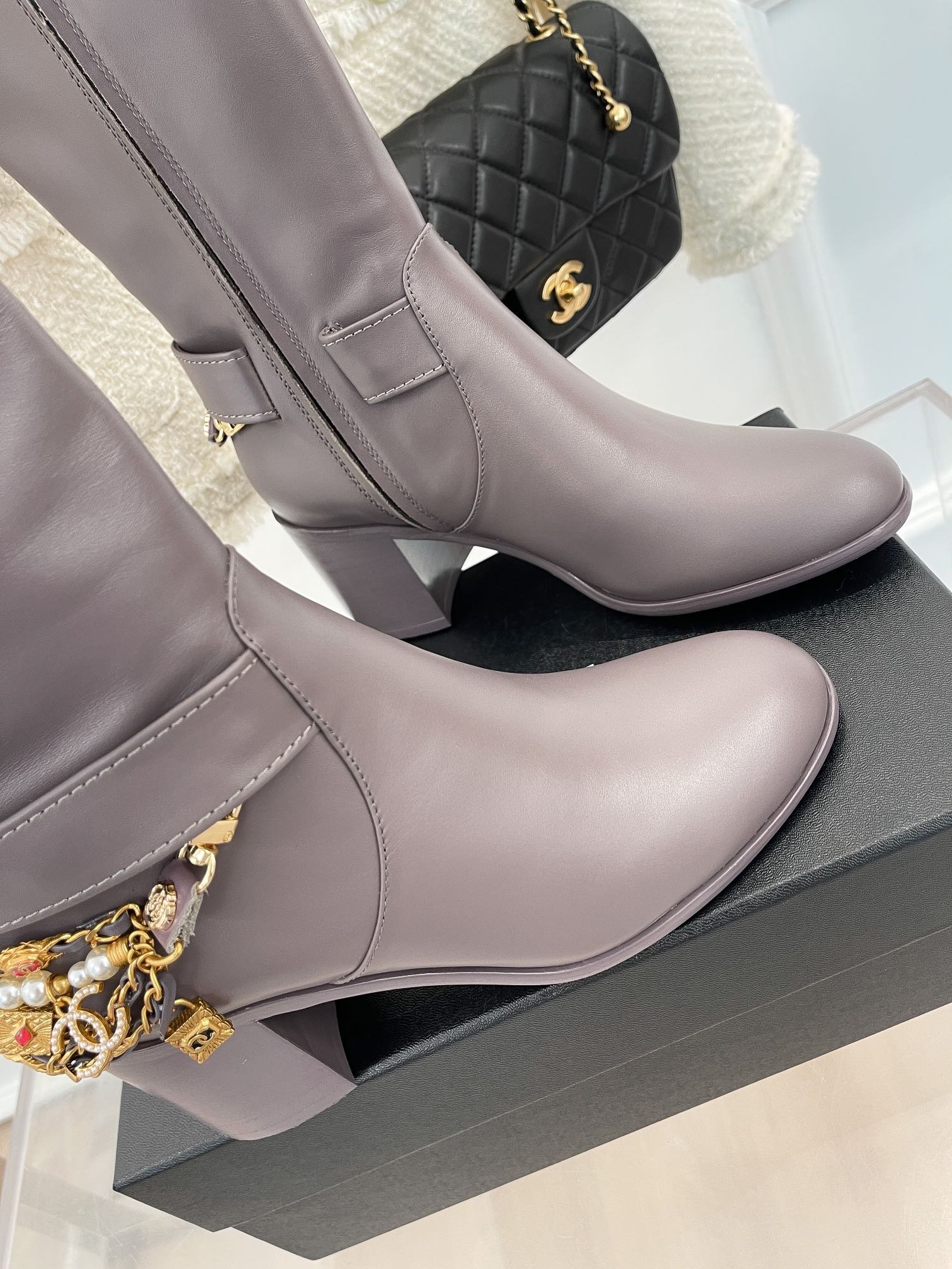 香奈儿女士浅紫色装饰高筒靴 3.7 英寸/ 9.5 厘米