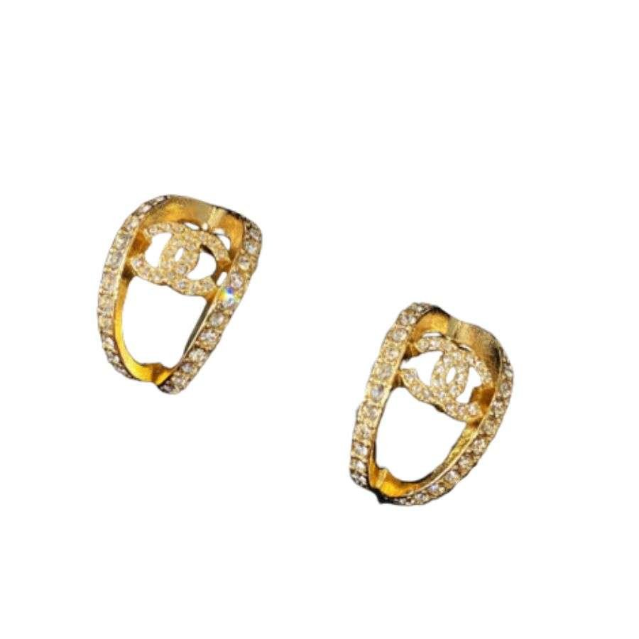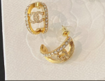 香奈儿空心月形耳环金色