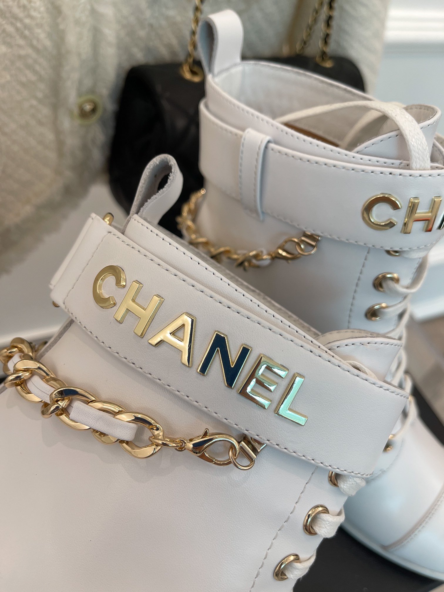 Chanel 女式系带带链鞋 白色 女式 3.7 英寸/9.5 厘米