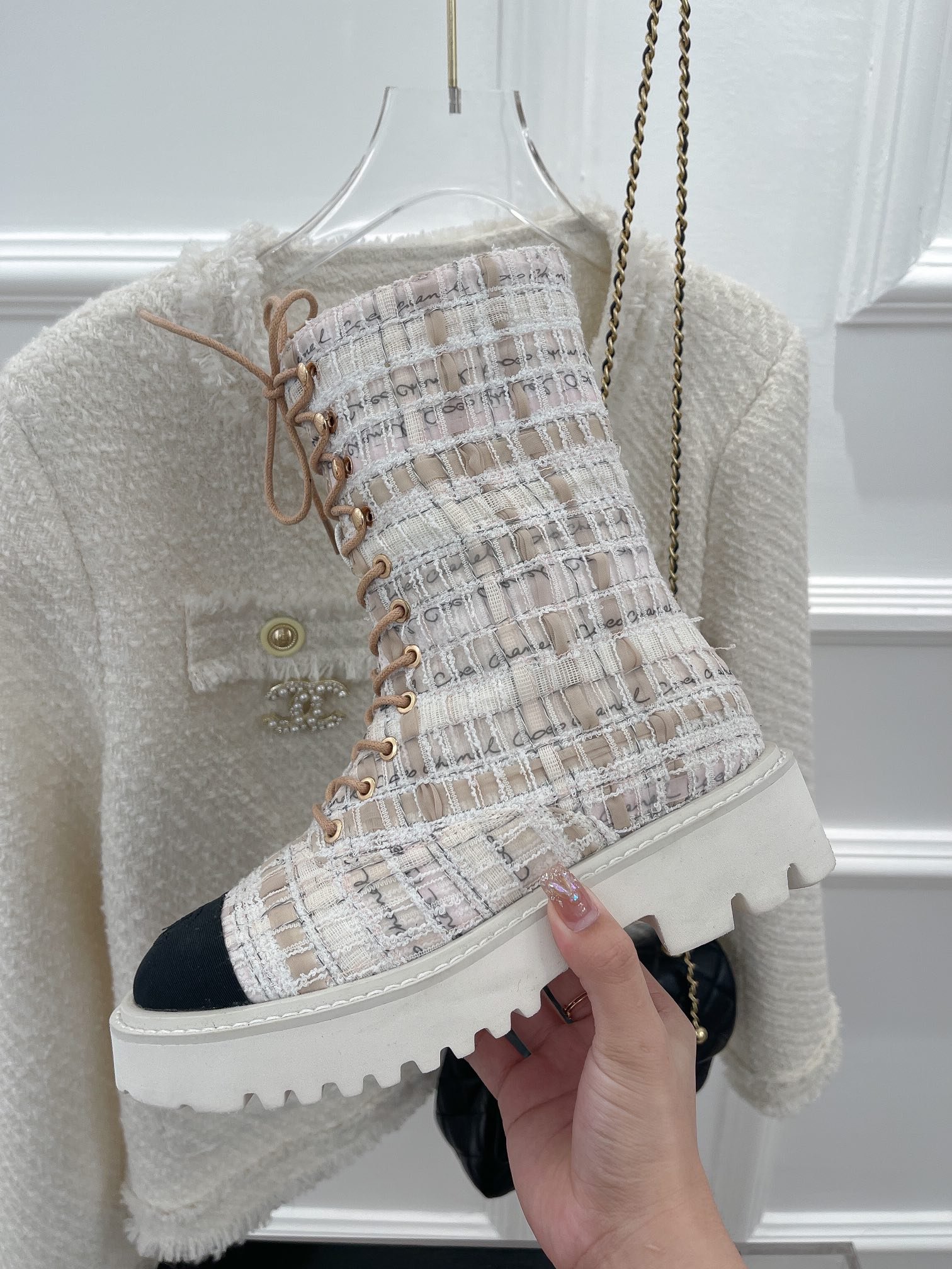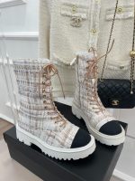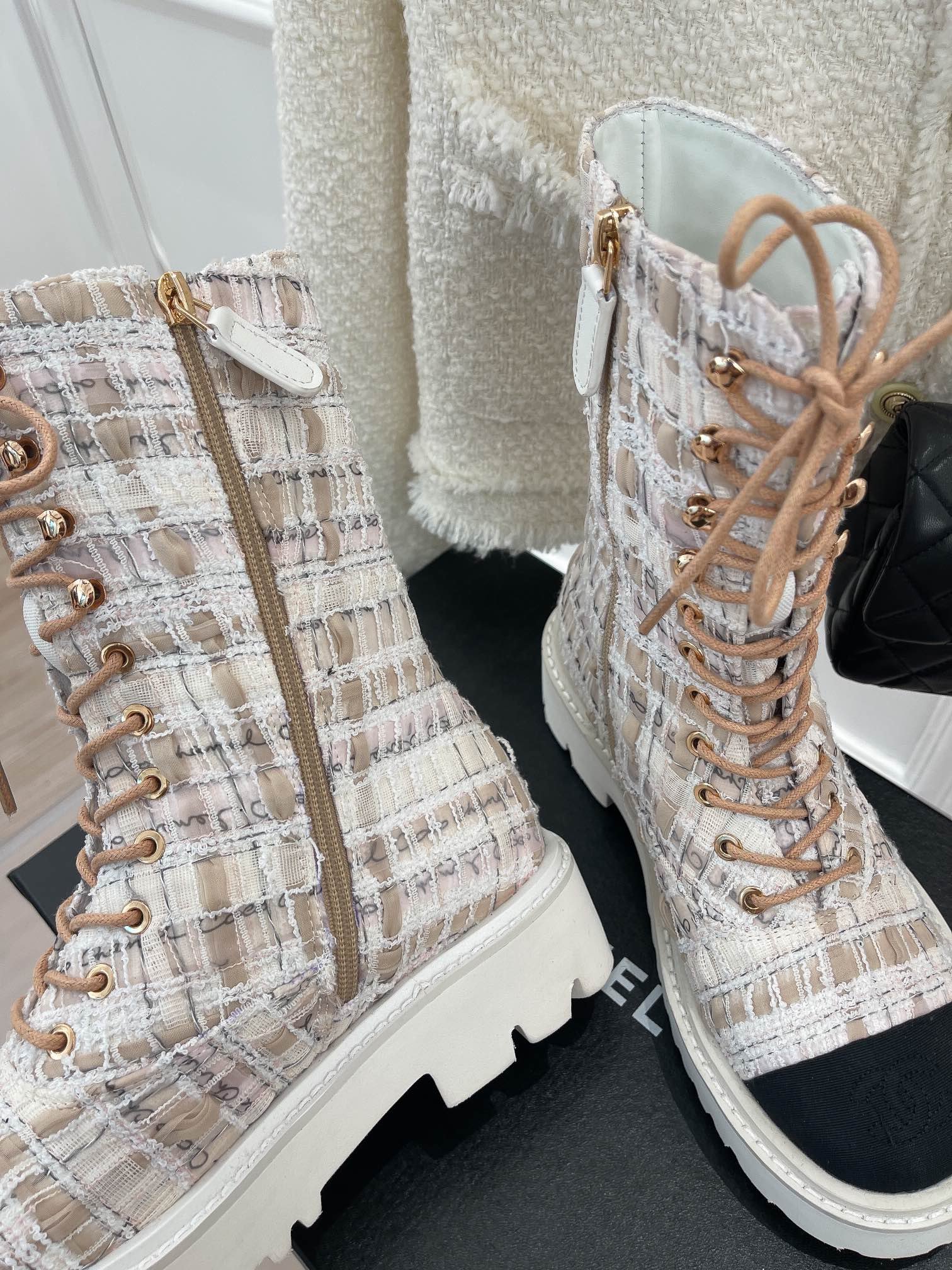 香奈儿女士系带马丁鞋白色 2 英寸/ 5 厘米