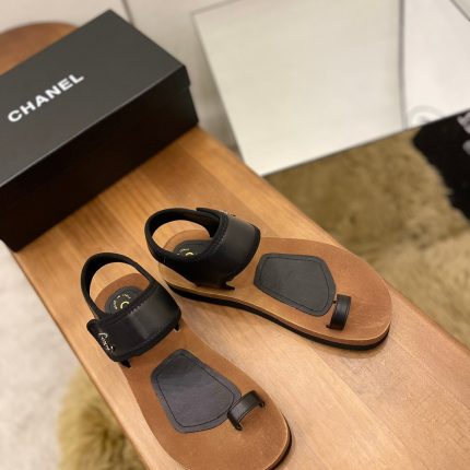 香奈儿女士魔术贴人字拖凉鞋白色