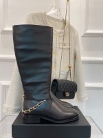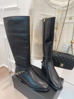 Chanel 女士黑色链条踝靴 1.5 英寸/ 4 厘米