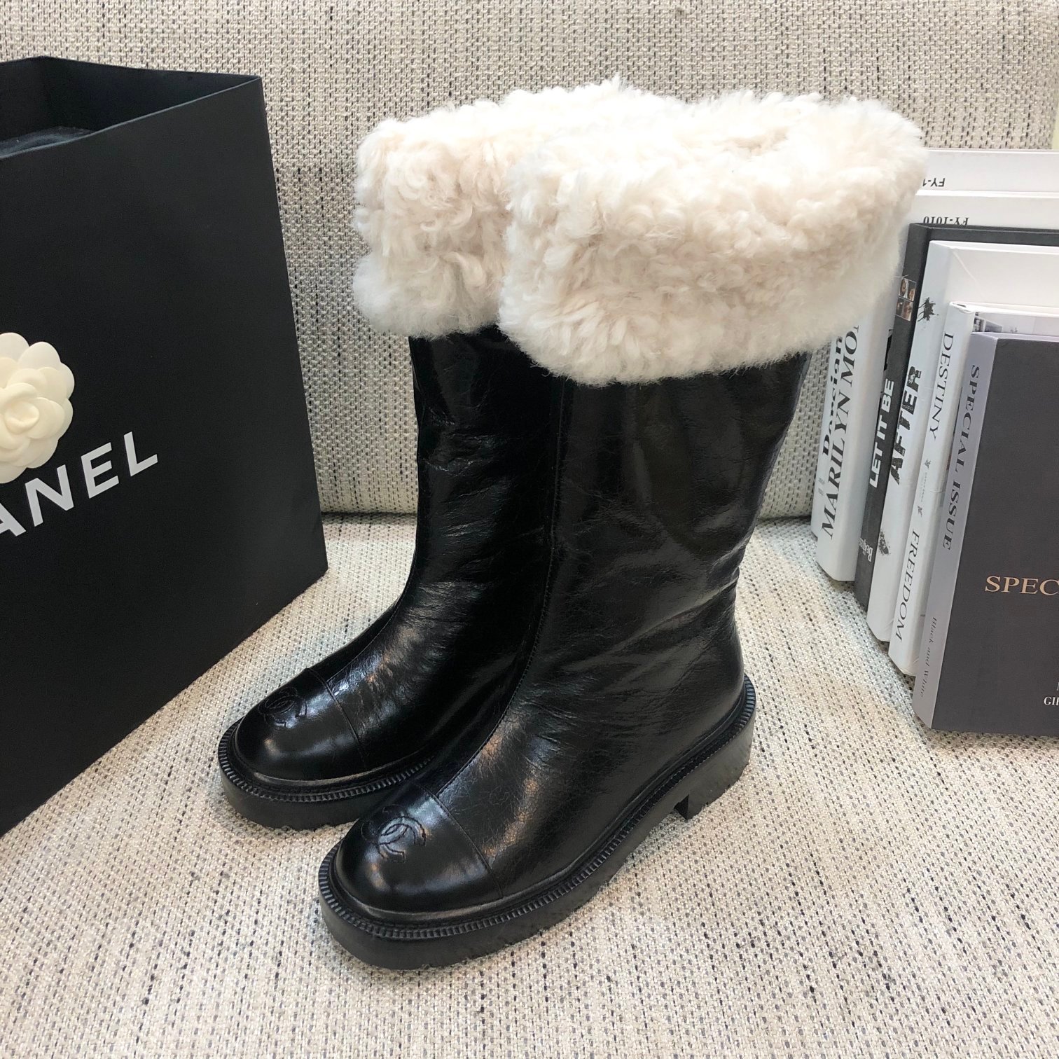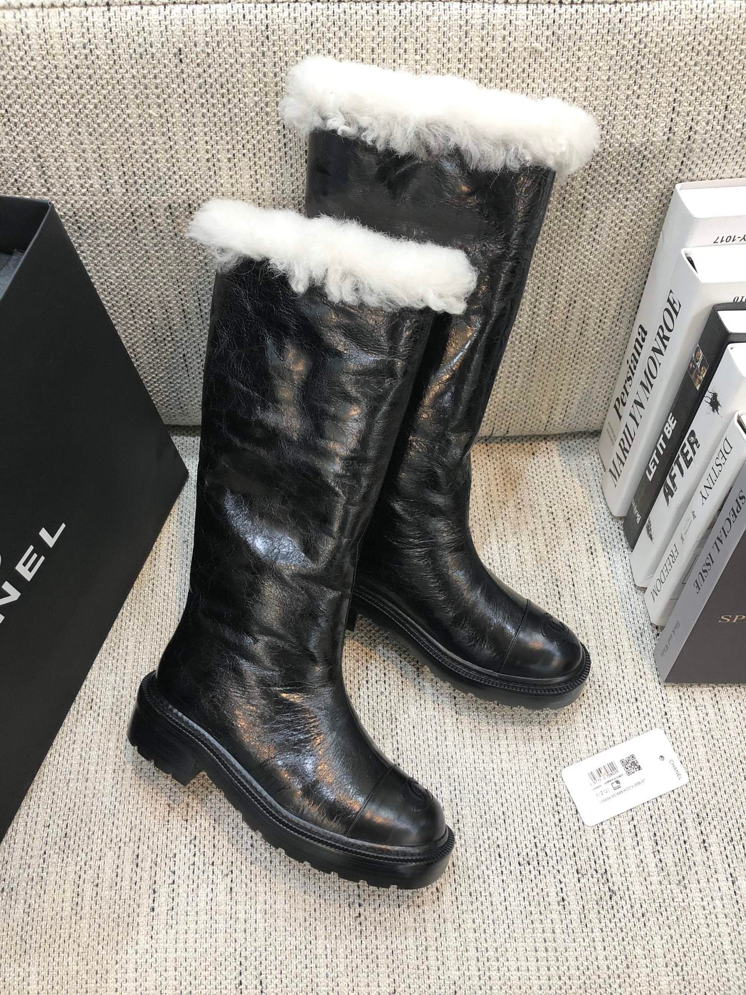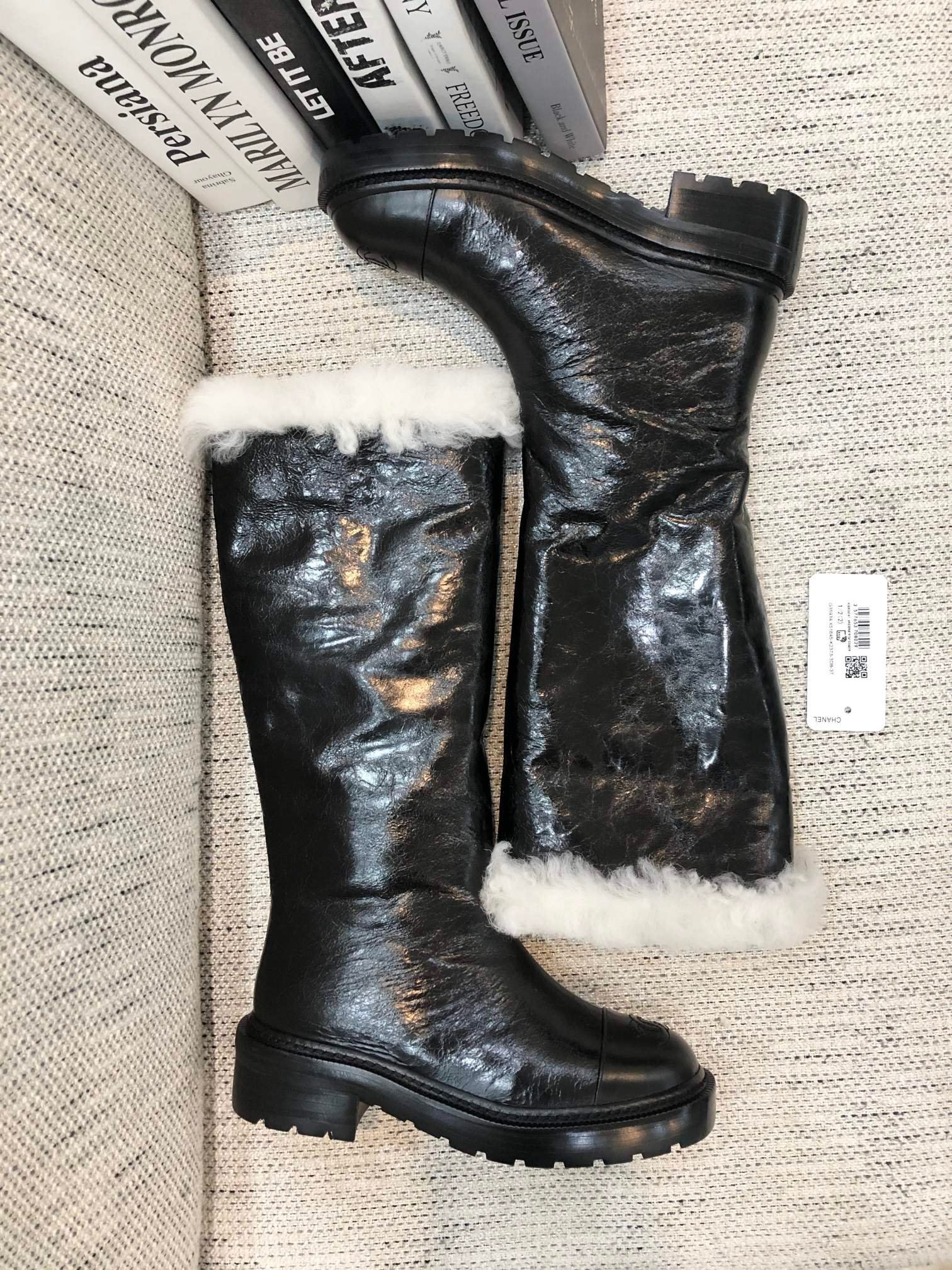 Chanel 女式 Coco 雪地靴黑色女式 17.7 英寸/45 厘米
