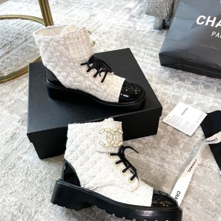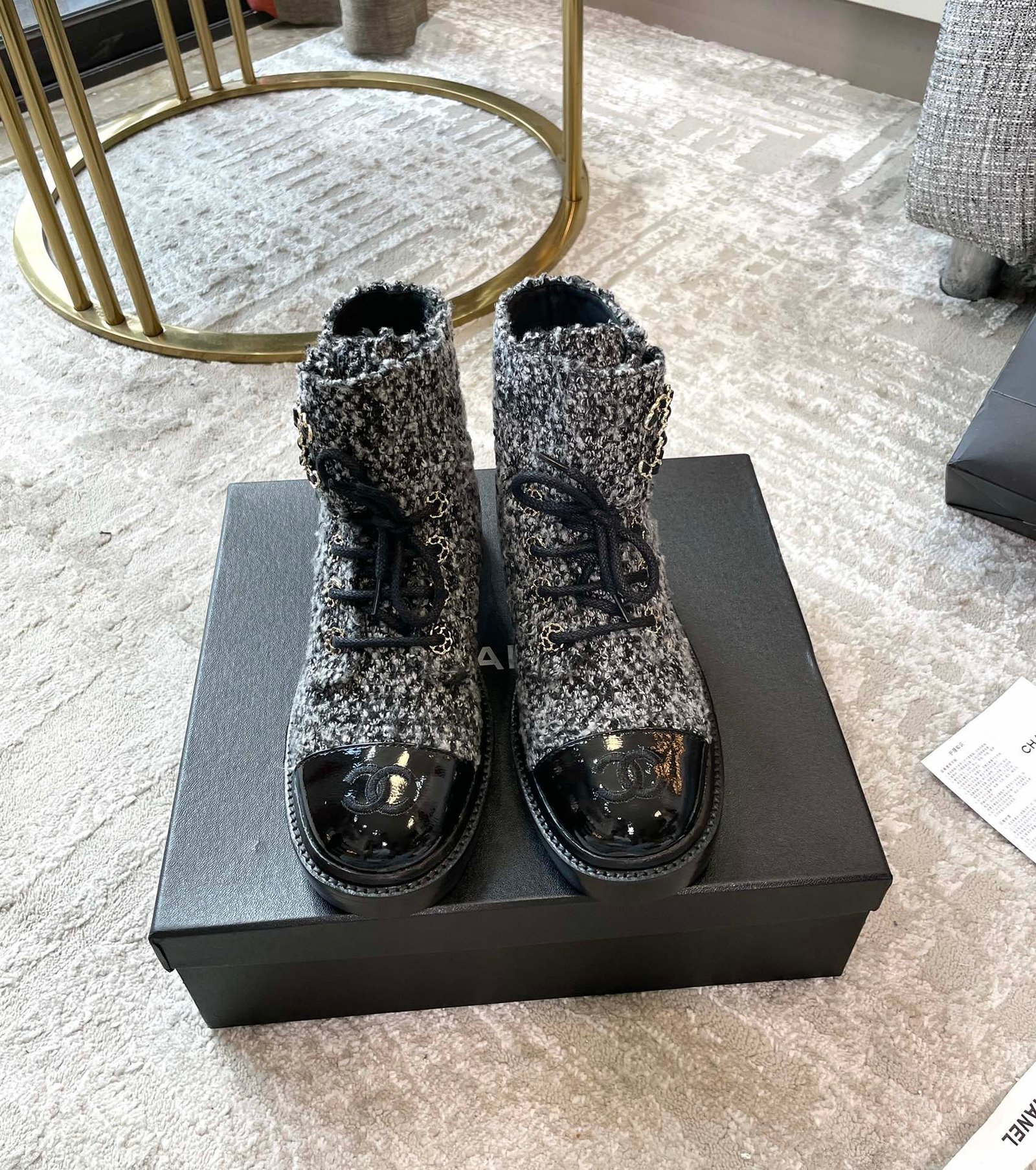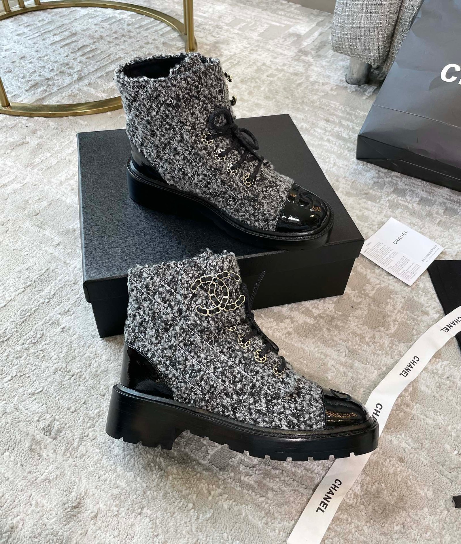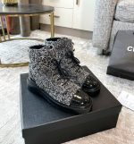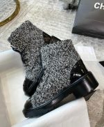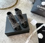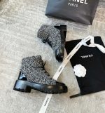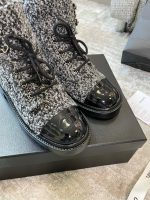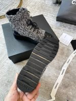 香奈儿女式系带鞋羊毛面料灰色女式 1.5 英寸/ 4 厘米