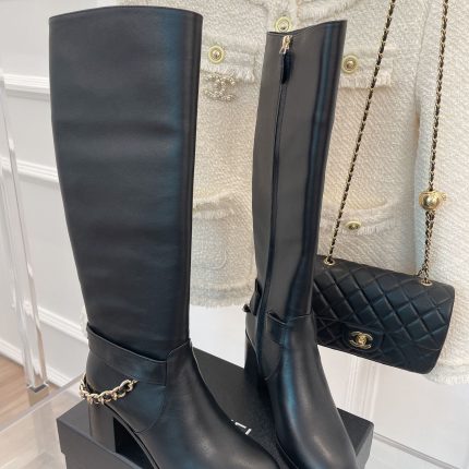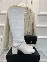 香奈儿女式链条高筒靴白色女式 3.7 英寸/ 9.5 厘米