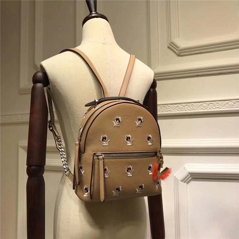 • 结构:小块皮跟刺绣组成的三只不同花蝶造型,金属配件,拉链封口,背面饰有FENDI ROMA标志
