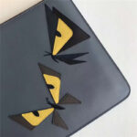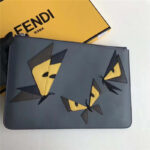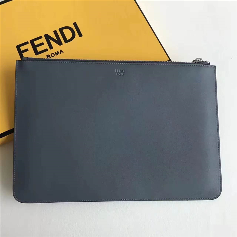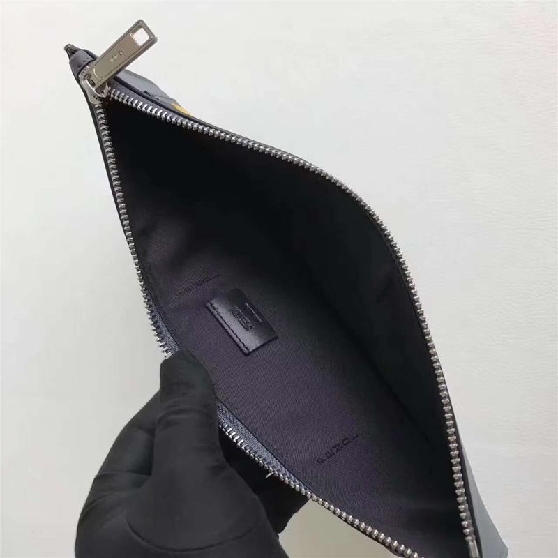• 0083 FENDI 芬迪 刺绣拼皮 花蝶造型 精美小牛皮纤薄手拿包 深灰色