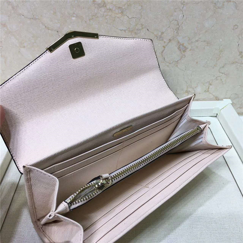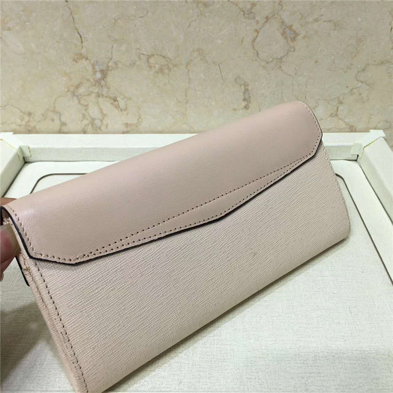 - 0306 FENDI 芬迪 小牛皮 翻盖按扣 长款皮夹 米色
