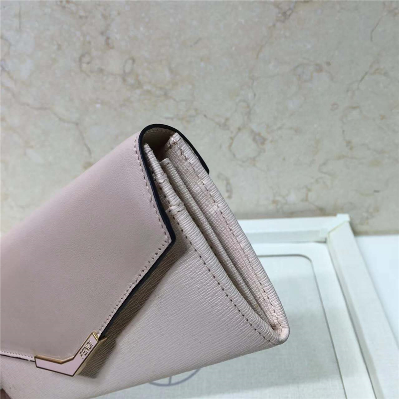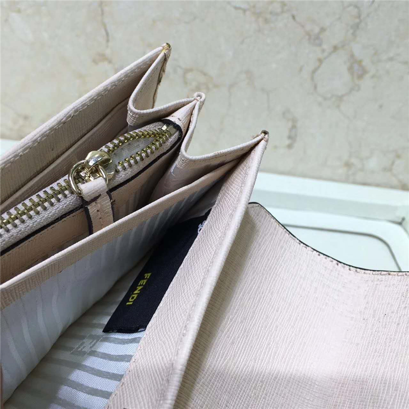 0306 FENDI 芬迪 小牛皮 翻盖按扣 长款皮夹 米色