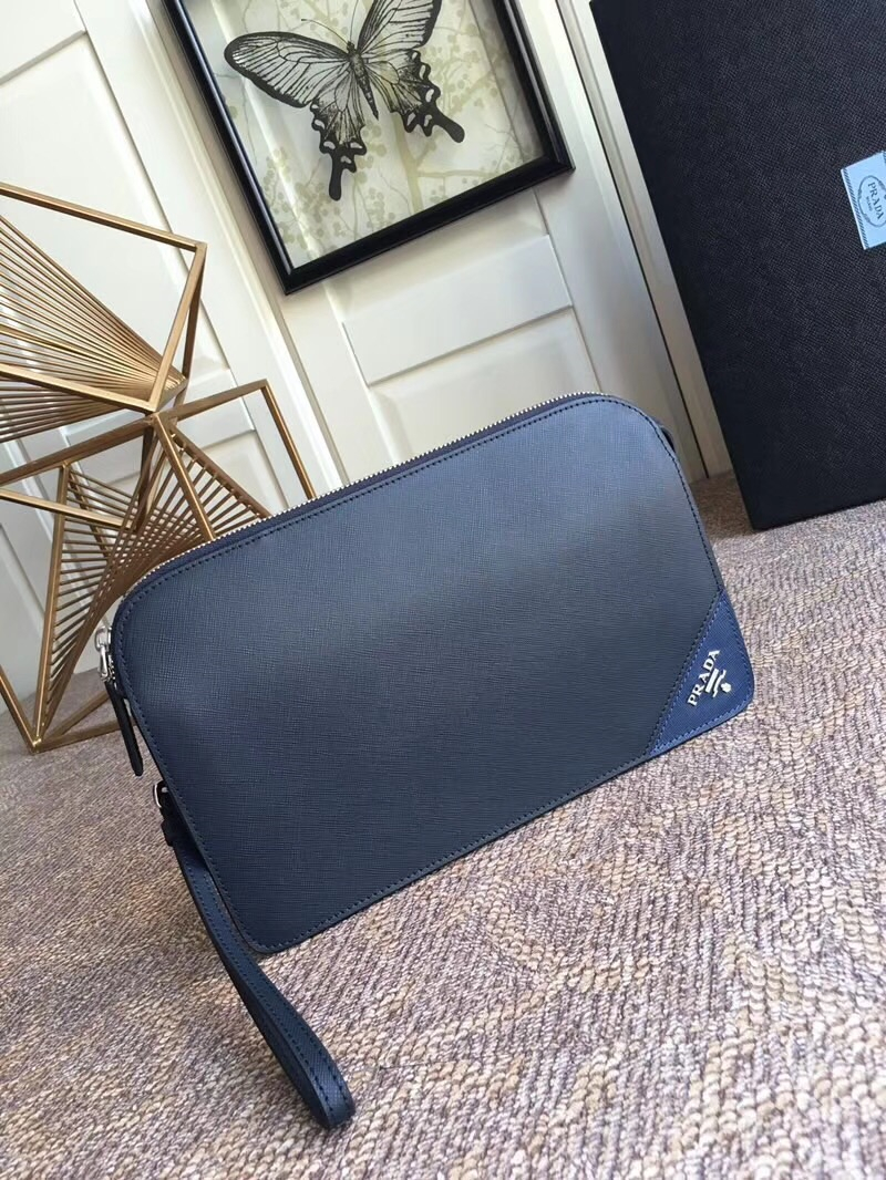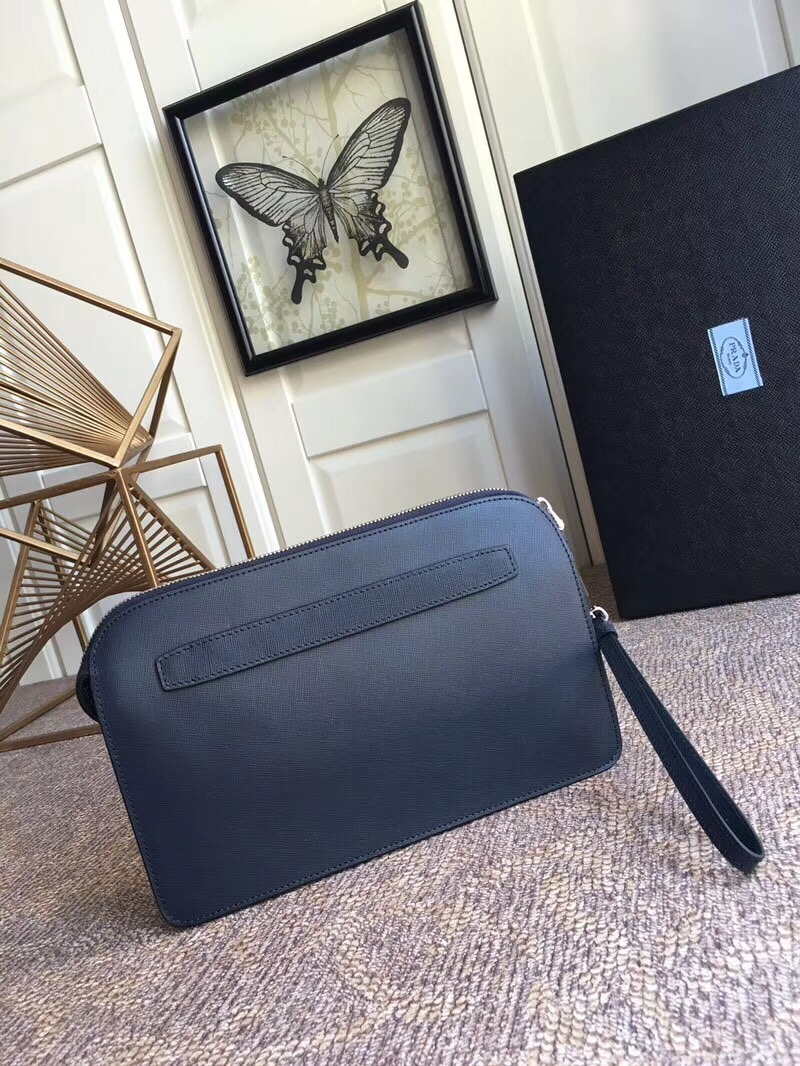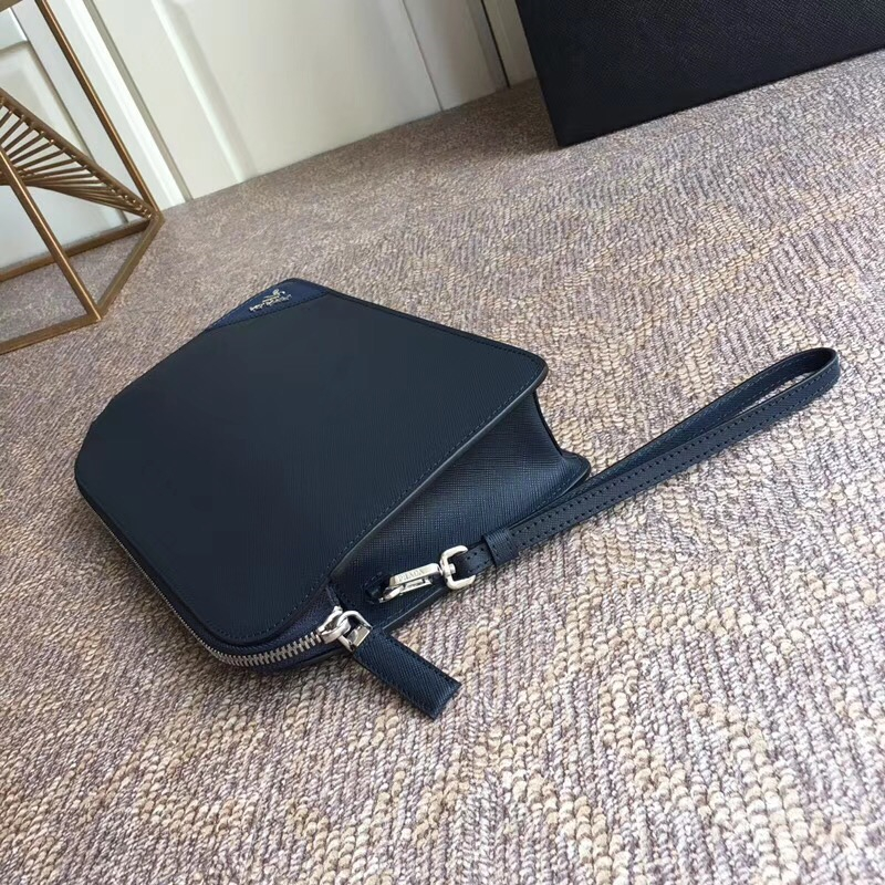 056V Prada钱包 普拉达钱夹 Prada男士手拿包 PRADA男包 蓝色