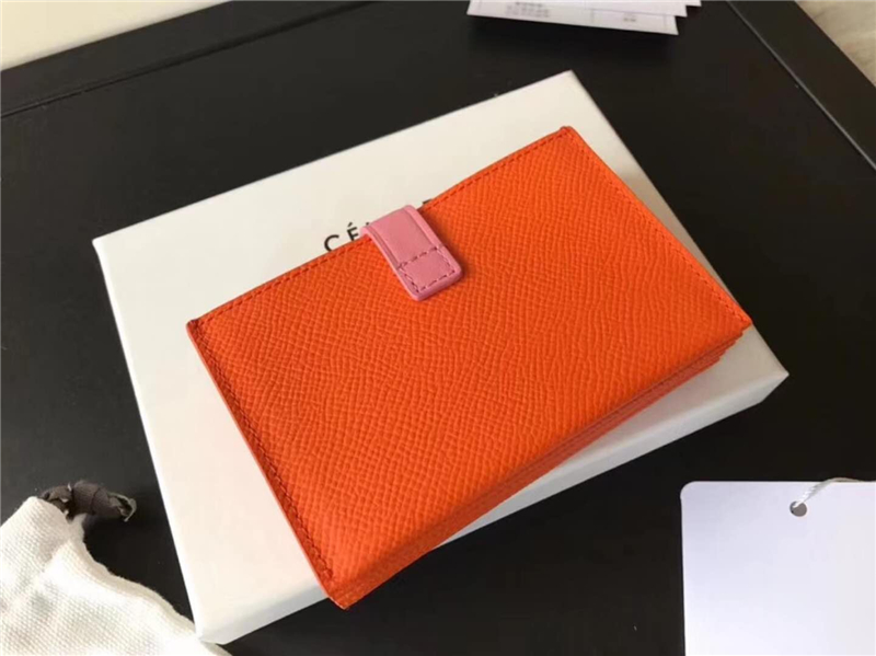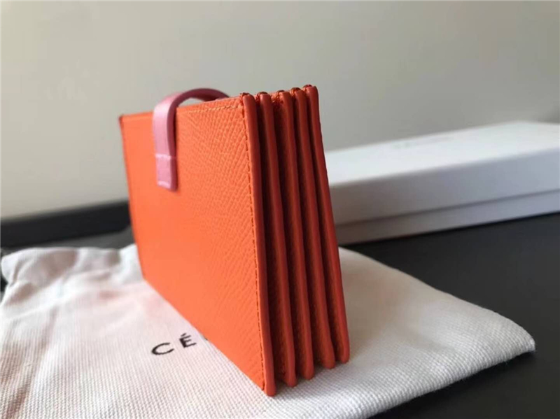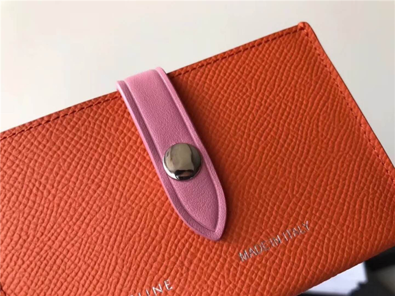 - 104323 Celine赛琳 Strap 粒面拼亮泽小牛皮 风琴褶 卡包 橘配粉