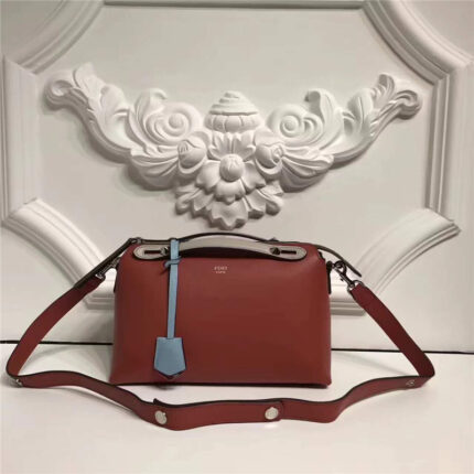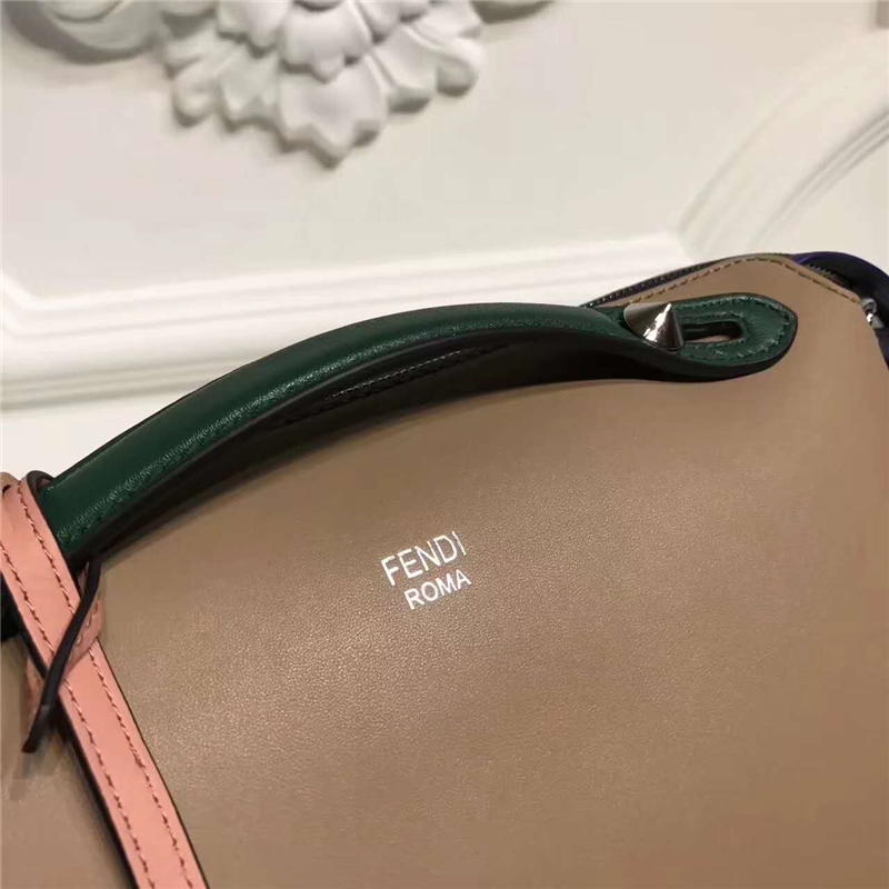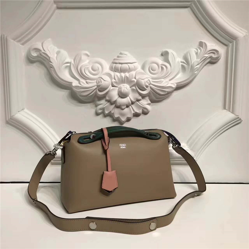 149S FENDI 芬迪 2017新款 柔软小牛皮 拼色波士顿手提包挎包 卡其拼粉