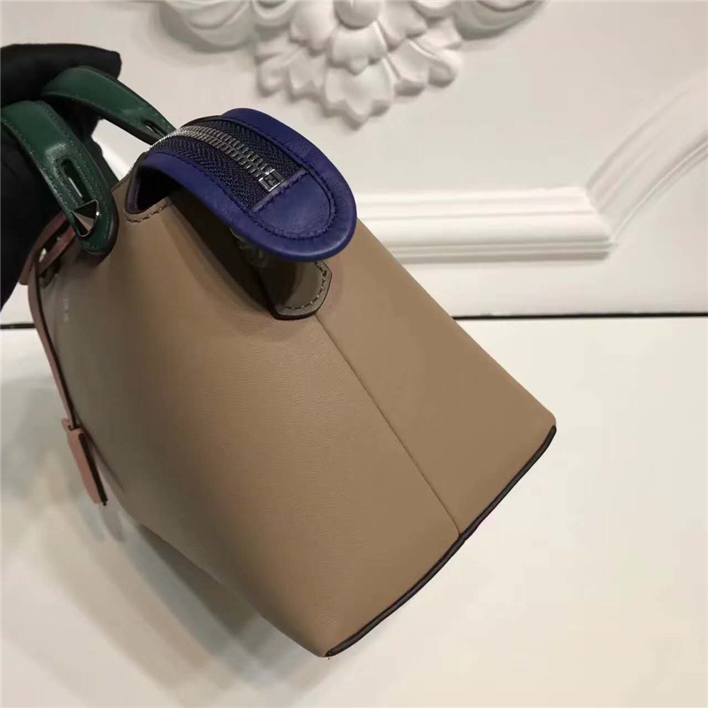 - 149S FENDI 芬迪 2017新款 柔软小牛皮 拼色波士顿手提包挎包 卡其拼粉