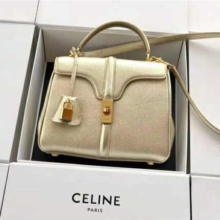 188003 Celine包包 赛琳女包 19新款 金属锁扣 小号小牛皮包 Celine手提包女包 银色