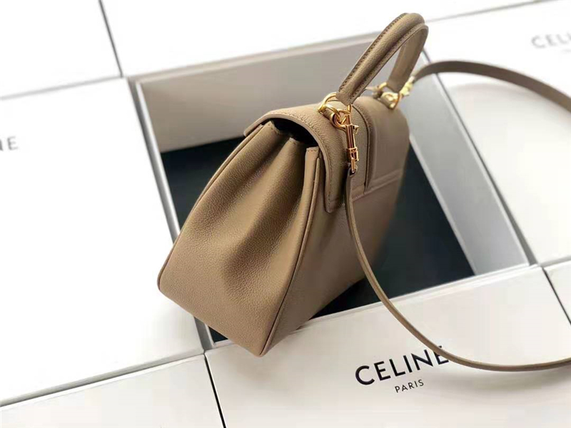 188003 Celine包包 赛琳女包 19新款 金属锁扣 小号小牛皮包 Celine手提包女包 卡其