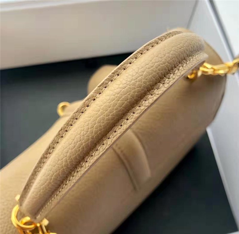 - 详细介绍:金色金属件 100%小牛皮 小羊皮衬里 黄铜锁扣 可拆卸肩带