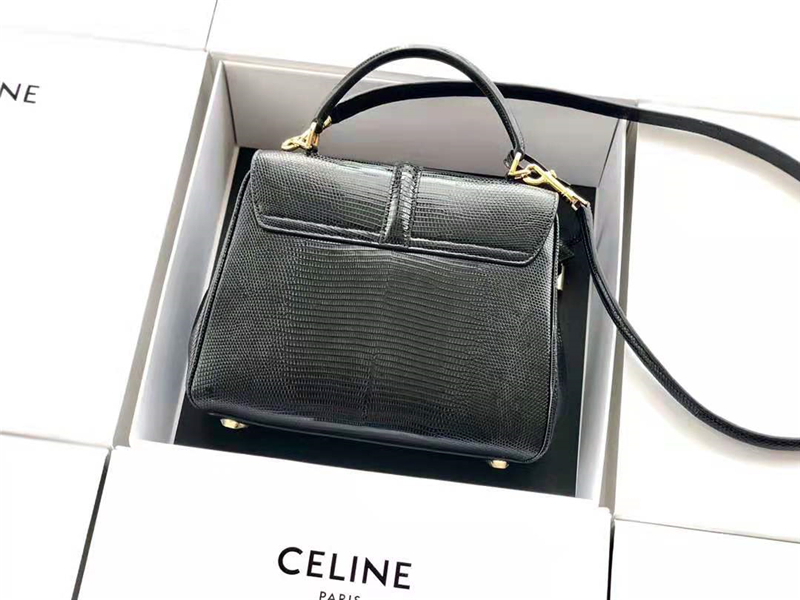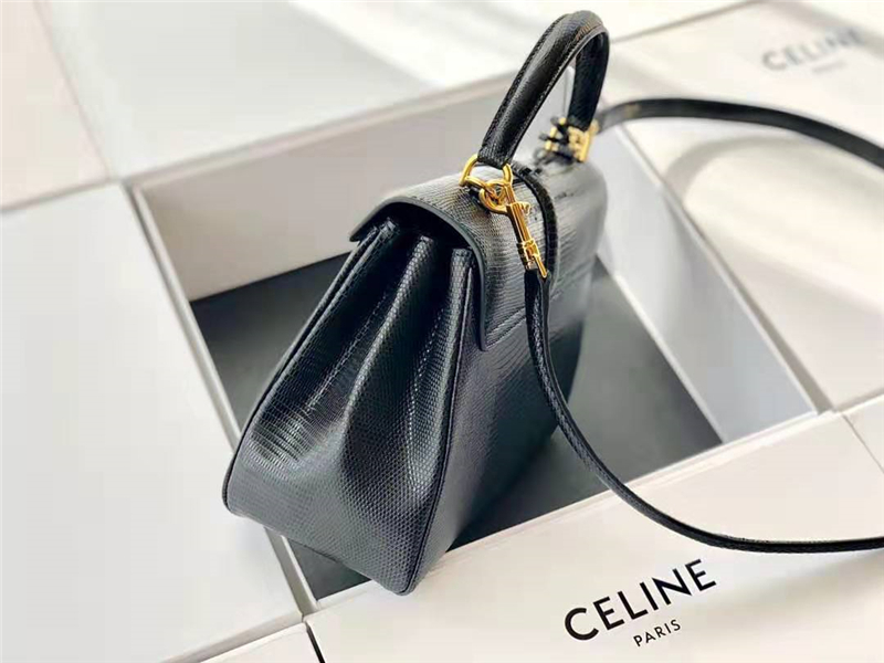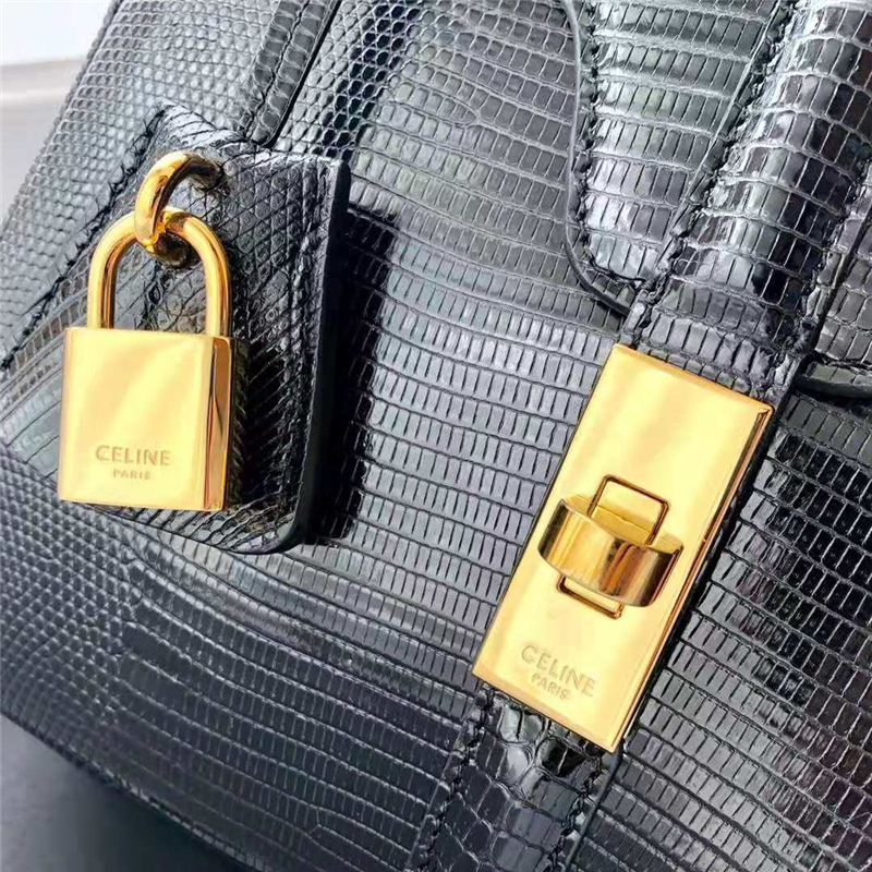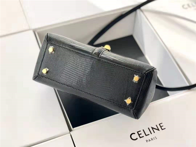 188004 Celine赛琳 19新款 女士小号 蜥蜴皮 Celine单肩手提包 烟黑色