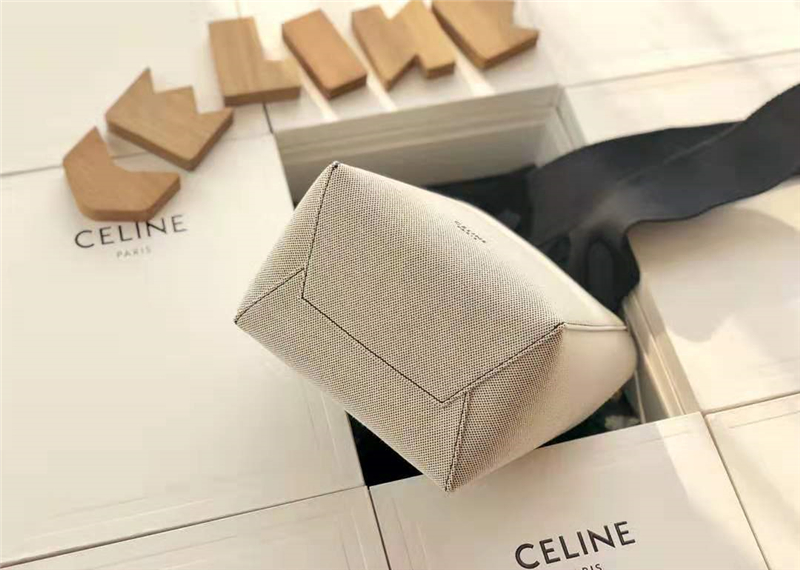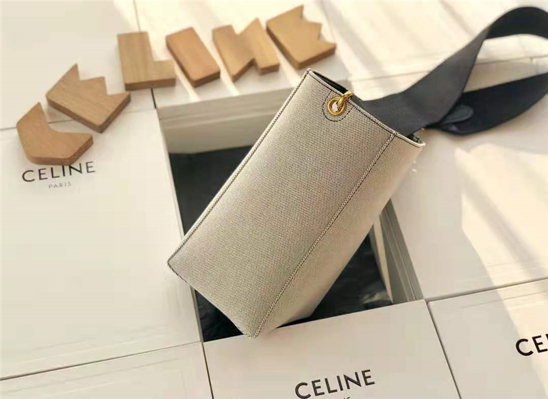 • 189302 Celine手袋 SANGLE BUCKET 小号 织物面料 Celine水桶包 浅灰色