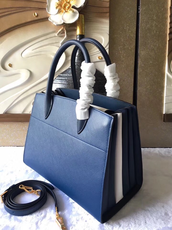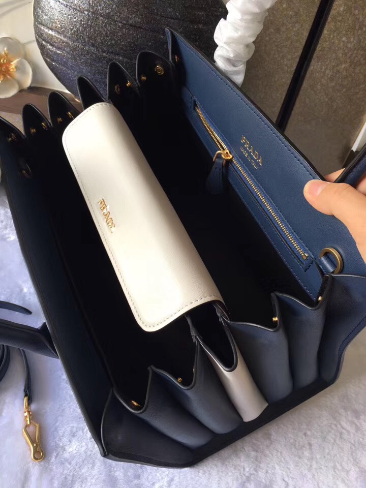 1BA049 Prada女士单肩包 牛皮 名媛范 风琴手提包 蓝配白