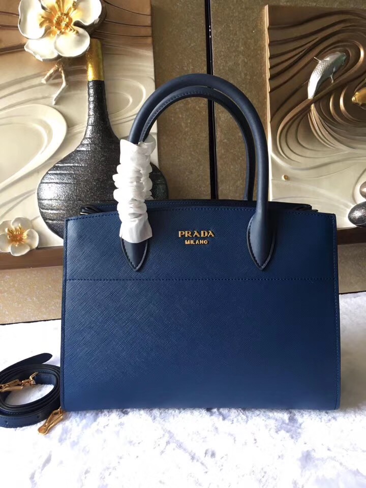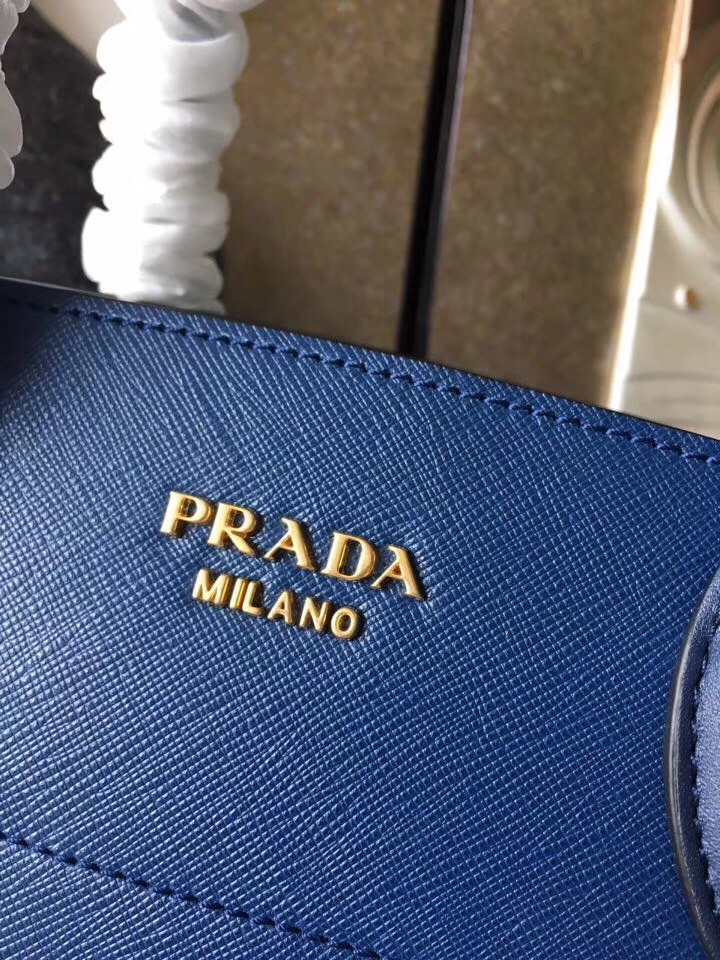 - 1BA049 Prada女士单肩包 牛皮 名媛范 风琴手提包 蓝配白