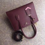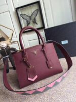 1BA102 Prada普拉达 最新款 拼色牛皮 女士手提袋 枣红