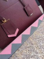 - 1BA102 Prada普拉达 最新款 拼色牛皮 女士手提袋 枣红