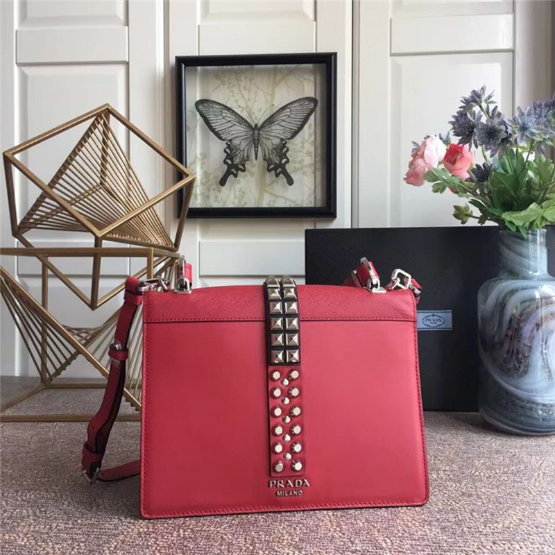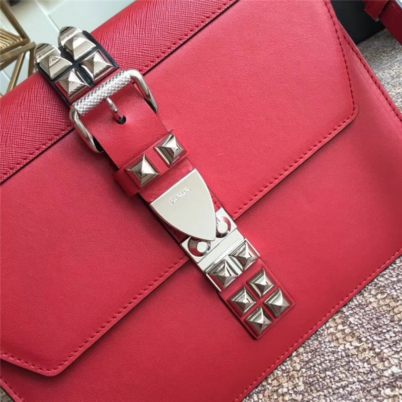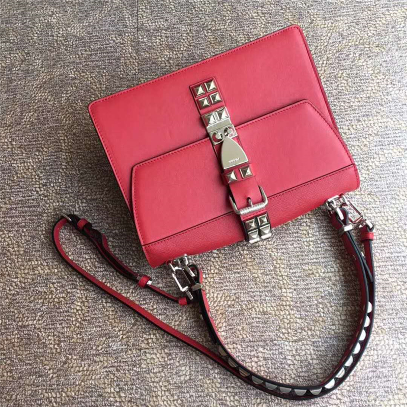 • 详细介绍:2018年最新款式1BA179,采用进口小牛皮和Saffiana皮革,铆钉皮革手柄,可拆卸的皮革肩带,抛光的镀钢金属五金,翻盖与推锁开合,两条肩带可拆卸,实用性强,又来一款爆款,165代工码