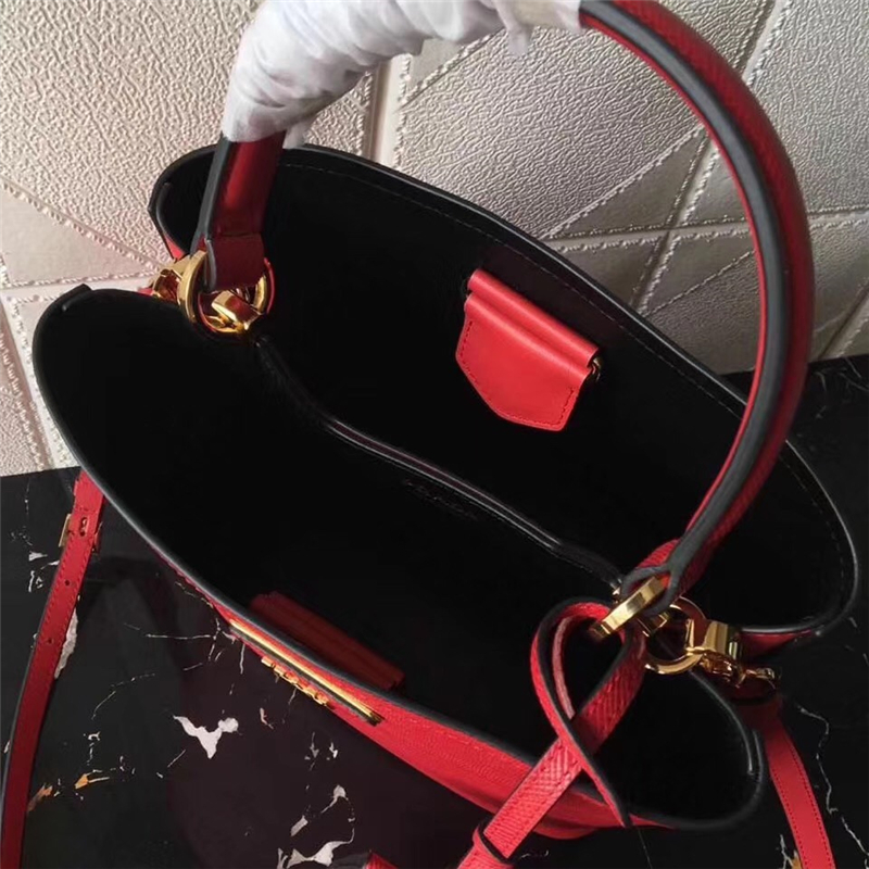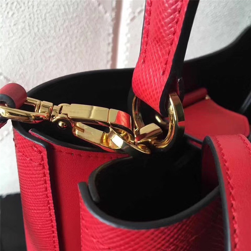 1BA212 普拉达包包 Prada手提包 普拉达水桶包 普拉达牛皮包 红黑色