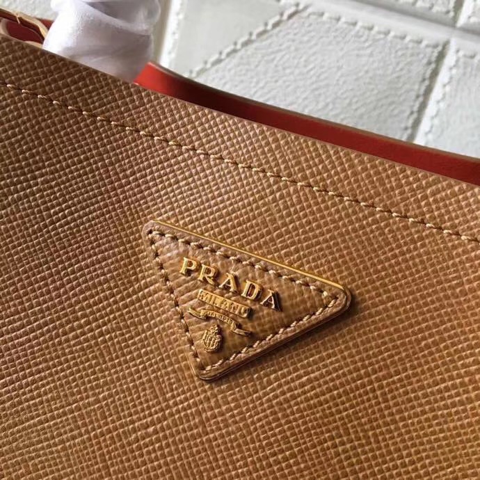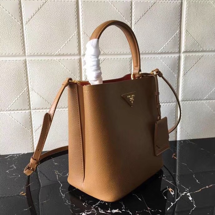 - 1BA212 Prada New Double 手袋 Prada手提包 普拉达水桶包 普拉达牛皮包 焦糖色