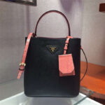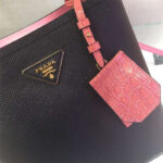 1BA212 Prada New Double 撞色鳄鱼牛皮 普拉达手提包 黑拼粉