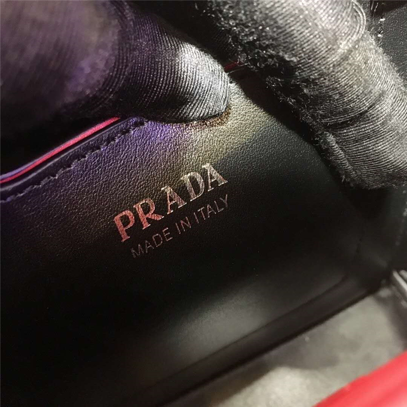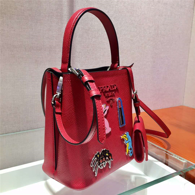 - 1BA217 Prada女包 Prada Panier 珐琅金属贴花 Saffiano皮革 Prada手袋 红色